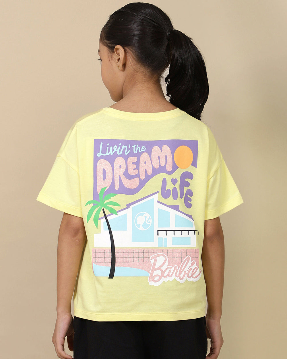 Introducing the Barbie Printed Oversized Fit Tshirt for Girls from Kidsville! Stay cool and comfy all summer long with this regular wear tshirt. BARBIE fans will go crazy for this stylish design, and it's officially licensed too! Made with high quality cotton material, this tshirt features a printed character on the front that is professionally printed for long-lasting color. Give your little one a trendy look and comfortable feel with this must-have tshirt. Don't wait, get your Barbie Printed Oversized Fit Tshirt today from Kidsville!
