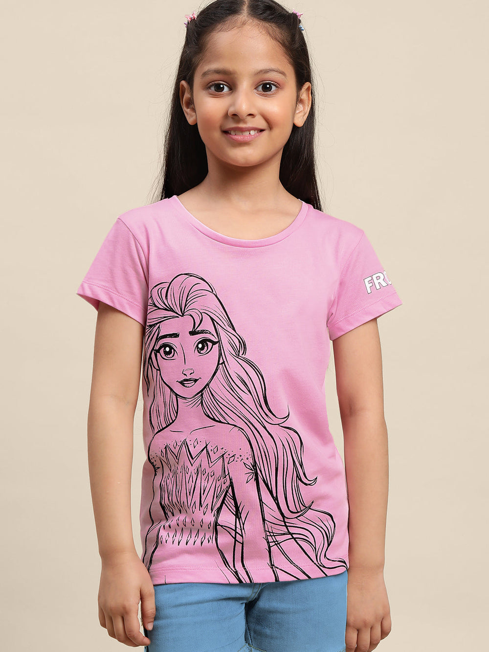 Hey parents, are you tired of your little princess constantly asking for Frozen merchandise? Well, we've got you covered with our Kids Girls Frozen Peach T-Shirt! This regular fit tee features a big, black graphic of Frozen that will make your child feel like they're part of the magical kingdom. And don't worry about the print fading, it's professionally printed for long-lasting quality. Plus, it's made of 100% cotton for ultimate comfort. Just throw it in the wash with like colors and tumble dry for easy care. This officially licensed product from Kidsville is the perfect gift for any Frozen fan. Get yours now!