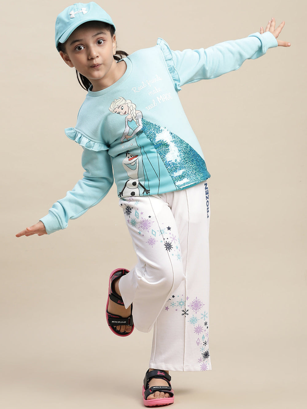 Hey parents, are you tired of your little princess wearing the same boring joggers every day? Well, say goodbye to plain and hello to fabulous with Kidsville's Frozen Printed Off-White Jogger for Girls! These joggers are perfect for your little fashionista, with a trendy off-white color and a fun Frozen print. Plus, they're made with high-quality material to keep your little one comfortable and stylish all day long. So why settle for boring when you can have the coolest joggers in town? Get your hands on Kidsville's Frozen Printed Off-White Jogger for Girls now!