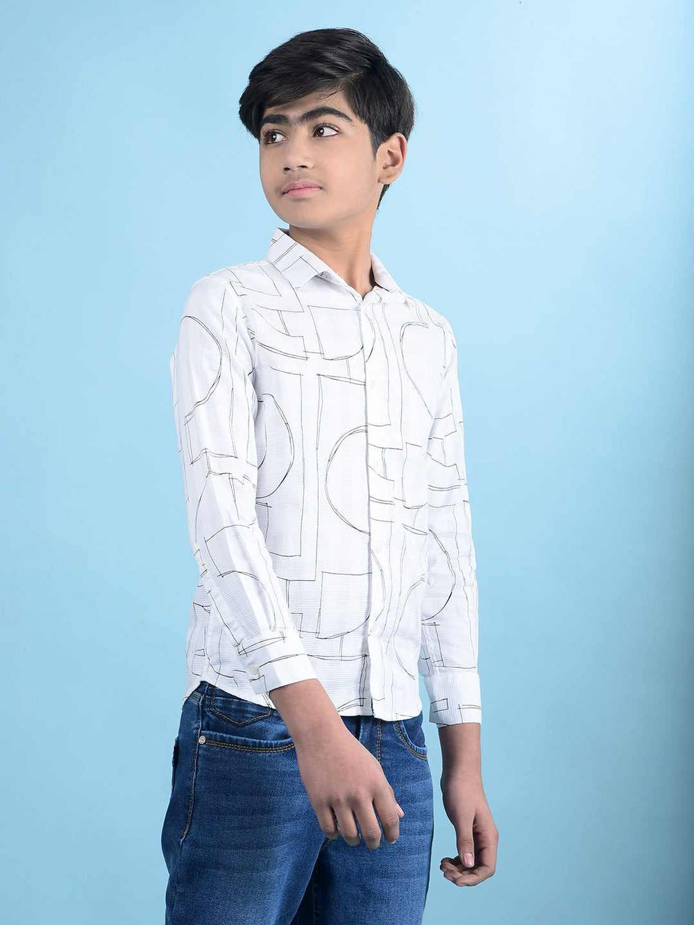 Add A Touch Of Playful Style To His Wardrobe With This Crimsoune Club Boy's 100% Cotton Shirt, Showcasing A Fun White Print That Ensures Breathable Comfort And A Cheerful, Unique Look.