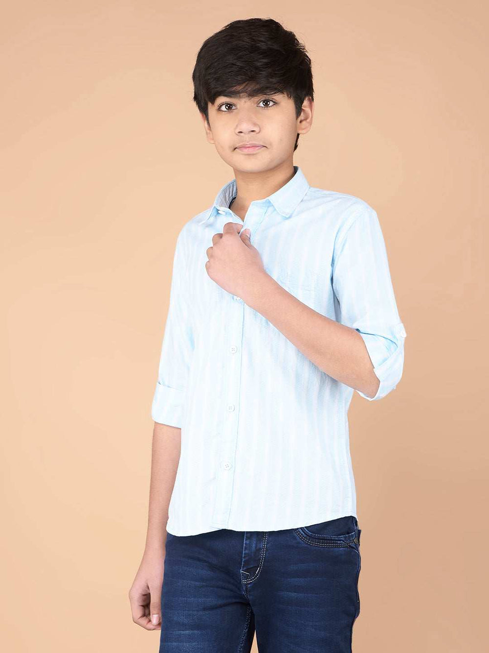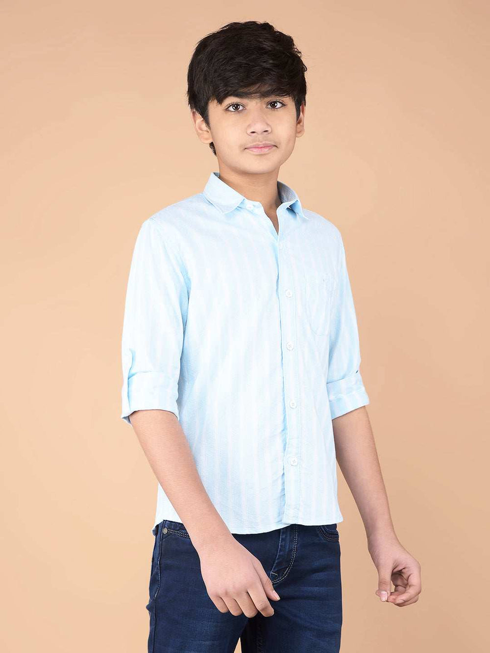 Enhance Your Boy's Wardrobe With The Crimsoune Club Boy's Shirt, Designed In The Stylish Blue Color And Featuring The Unique Striped Pattern. Perfect For Both Casual And Formal Looks, This Shirt Offers A Comfortable Fit With A Modern Touch.