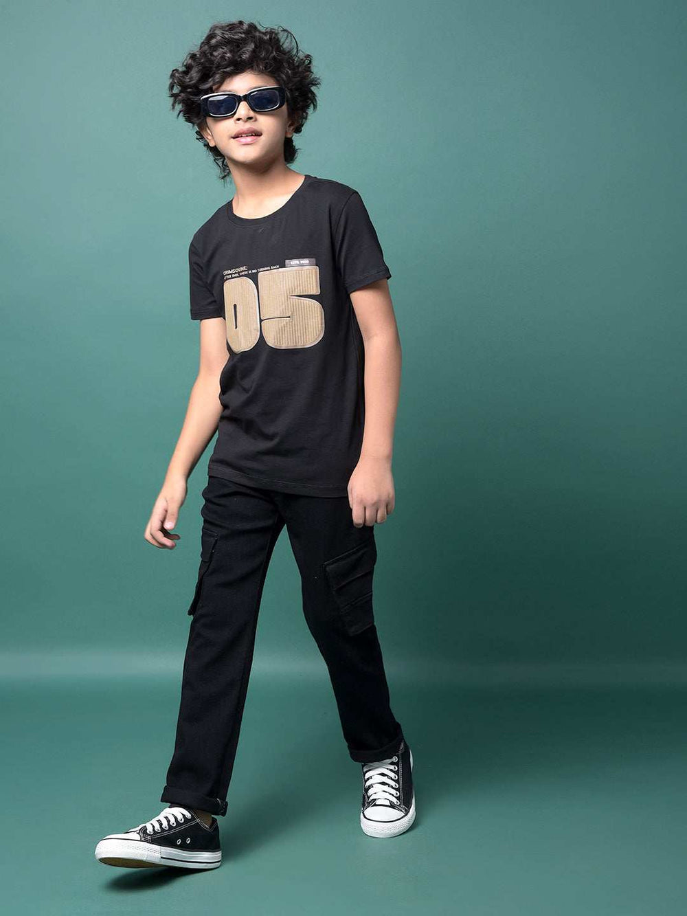 Let Your Little One Stay Stylish With This Black Cargo Jeans From Crimsoune Club, Crafted Especially For Boy's Fashion.