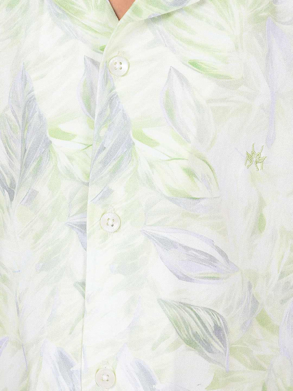 Crimsoune Club Boy's Green Floral Print Cuban Collar Shirt - Stay Effortlessly Stylish While Embracing Ultimate Comfort. Embrace A Modern Vibe With This Green Floral Print Cuban Collar Shirt, A Perfect Pick For Your Wardrobe.