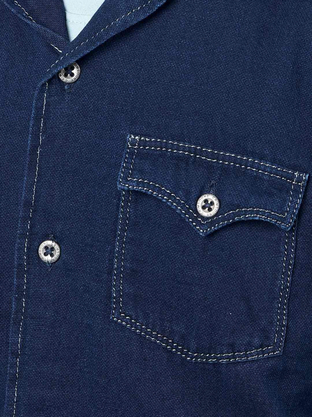 Embrace Cool Casual Style For Your Boy With The Crimsoune Club Boy's Navy Blue 100% Cotton Resort Collar Denim Shirt. This Versatile Navy Blue Denim Shirt Features A Relaxed Resort Collar And Is Made From Pure Cotton, Offering A Comfortable And Trendy Look. Perfect For A Laid-Back Vibe, It's Ideal For His Everyday Adventures.