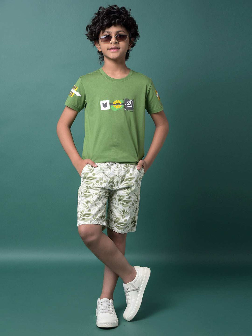 Let Your Little One Stay Stylish With This Green Graphic Print T-Shirt From Crimsoune Club, Crafted Especially For Boy's Fashion.