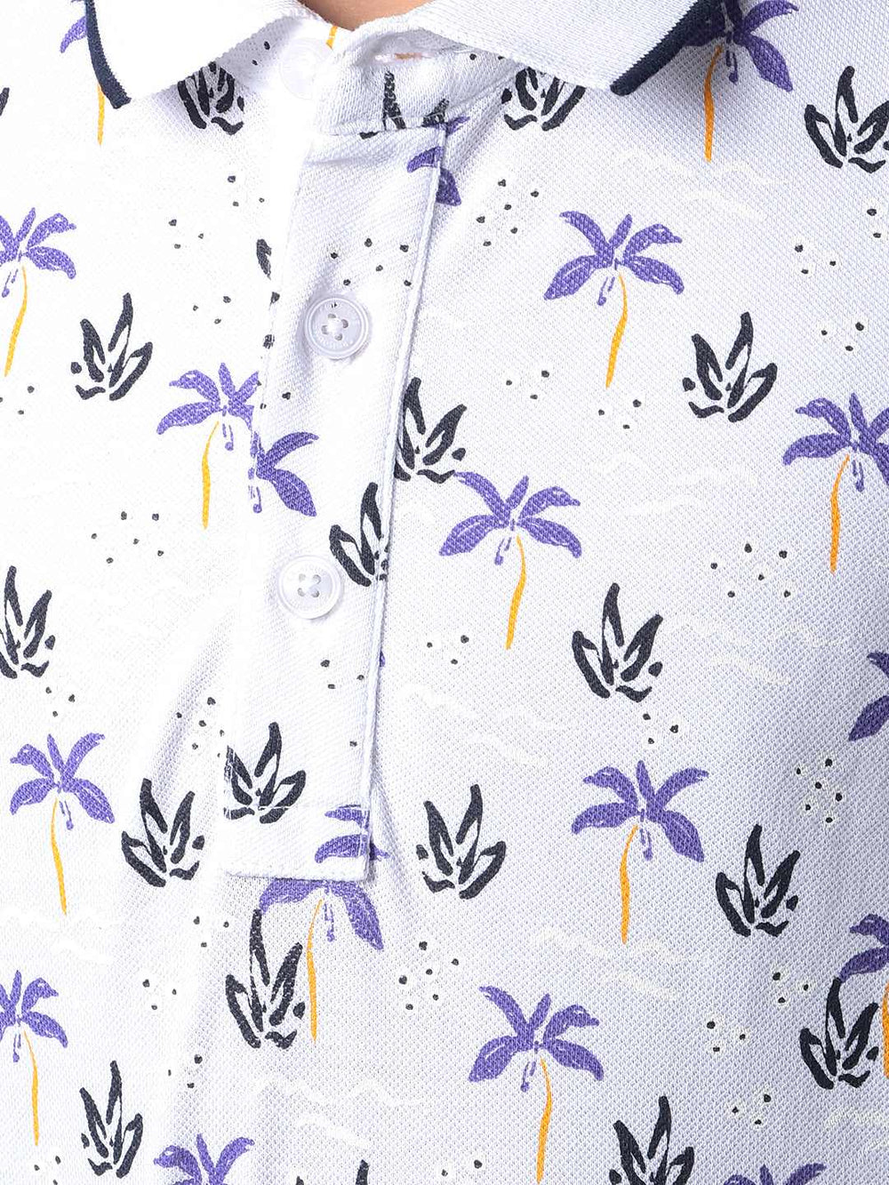 Experience All-Day Comfort And Modern Design With This Floral Print Polo Neck Purple T-Shirt From The House Of Crimsoune Club.