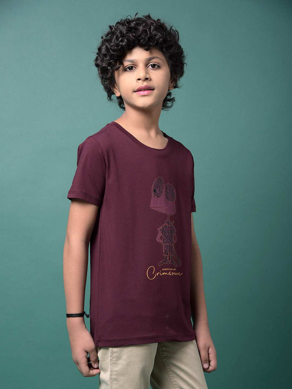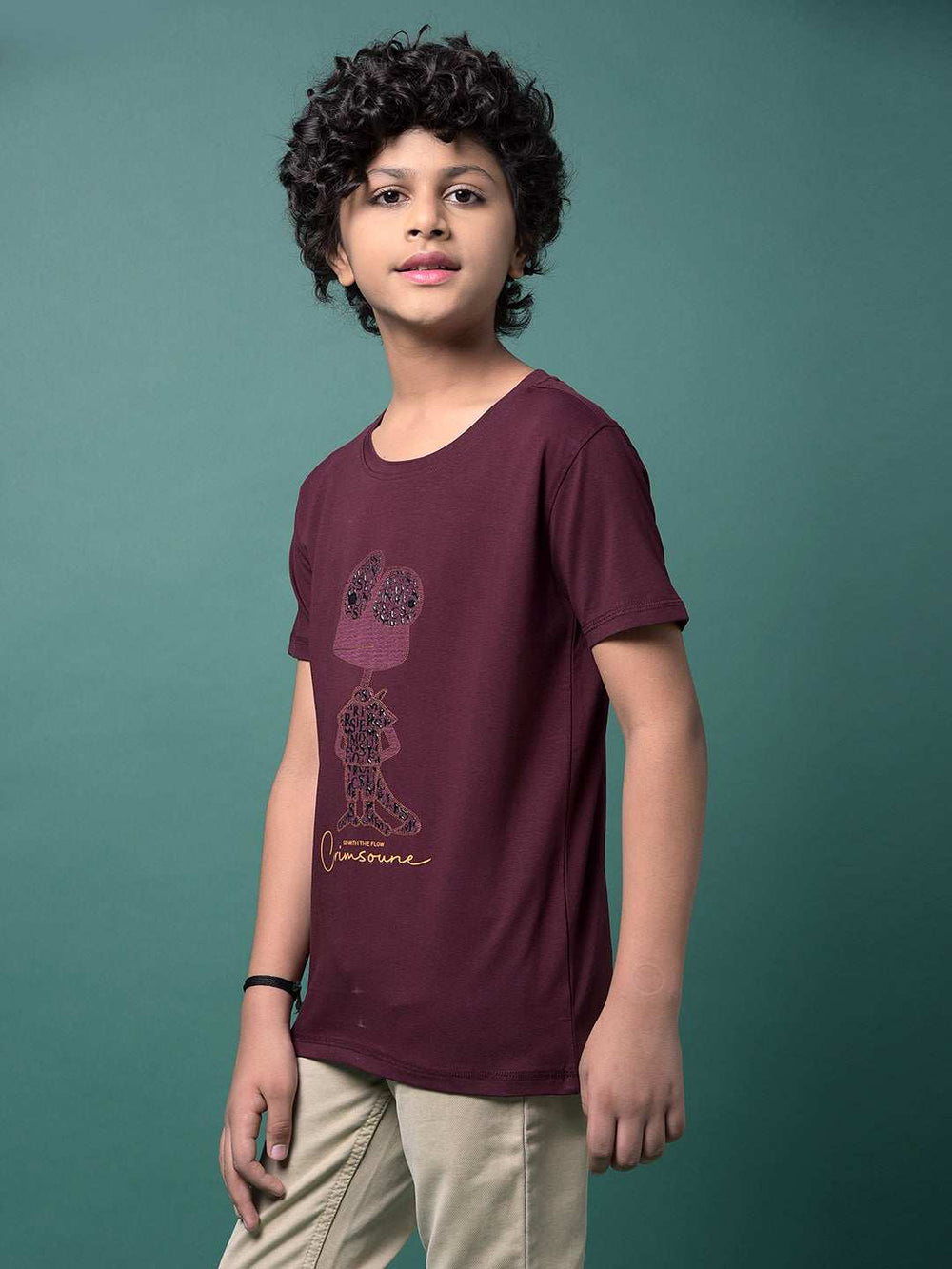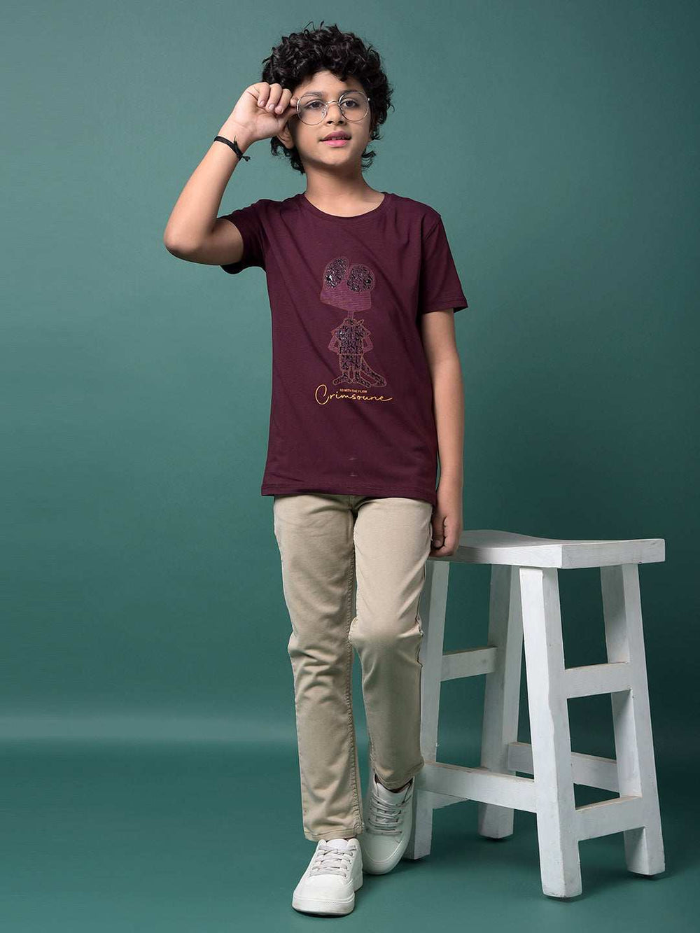 Upgrade Your Boy's Summer Wear With The Crimsoune Club Wine Embellished T-Shirt — Perfect For Casual Days And Playtime.