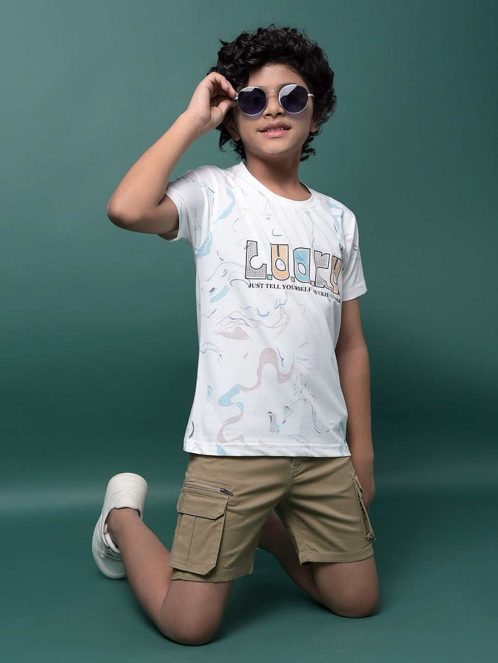 This White Graphic Print T-Shirt By Crimsoune Club Is Tailored For Boys Who Love Comfort And Style In Every Step.