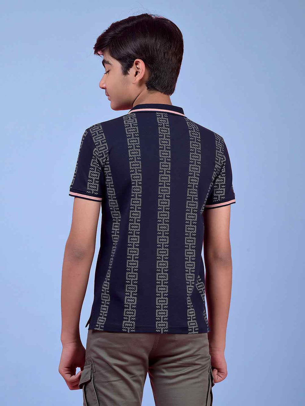 Achieve A Classic Yet Fresh Look For Your Boy With The Crimsoune Club Boy's Navy Blue Printed Polo Neck T-Shirt. This Essential Navy Blue Polo Features Stylish Prints, Adding A Modern Twist To A Timeless Design. Perfect For Everyday Wear, It Ensures Both Comfort And A Sophisticated Casual Appeal.