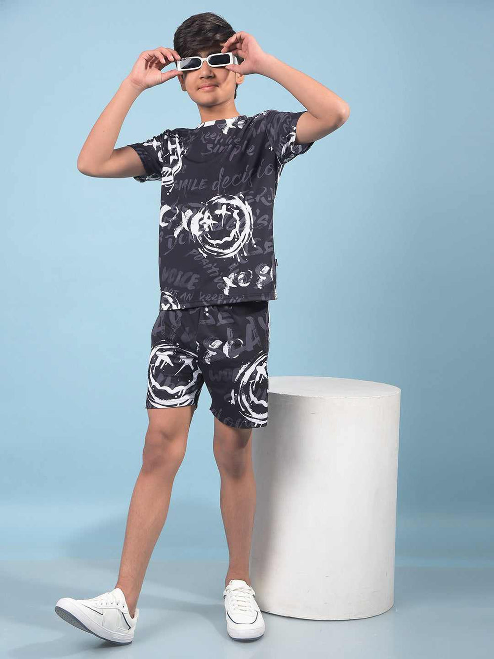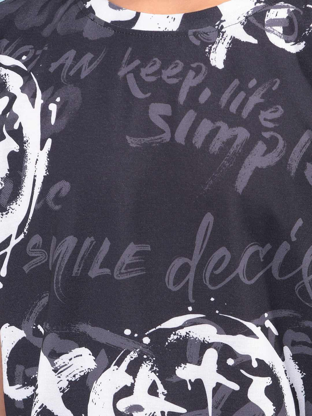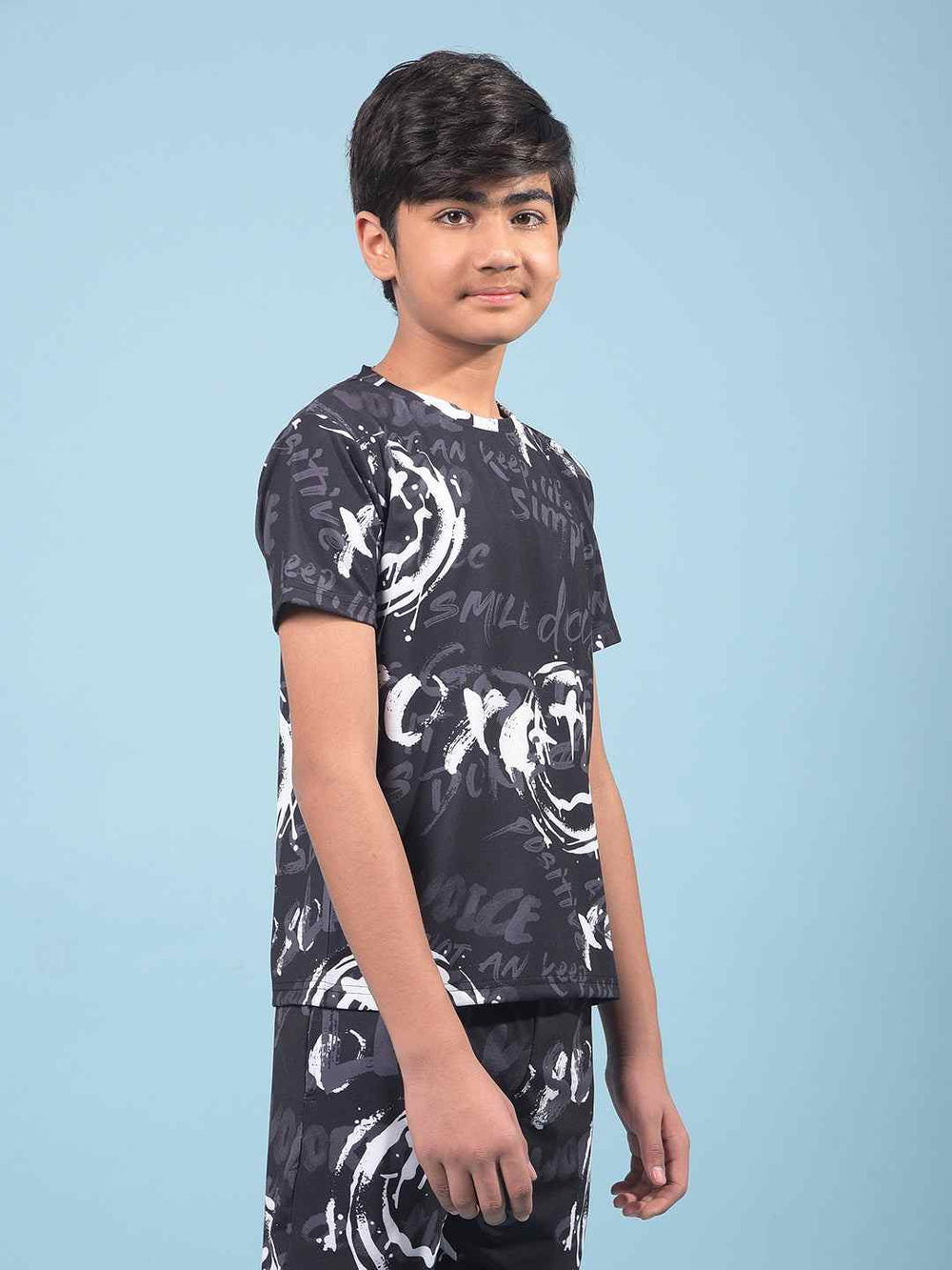 A Wardrobe Classic With A Twist—This Black Printed Tee From Crimsoune Club Adds Character To Boys’ Everyday Fashion.