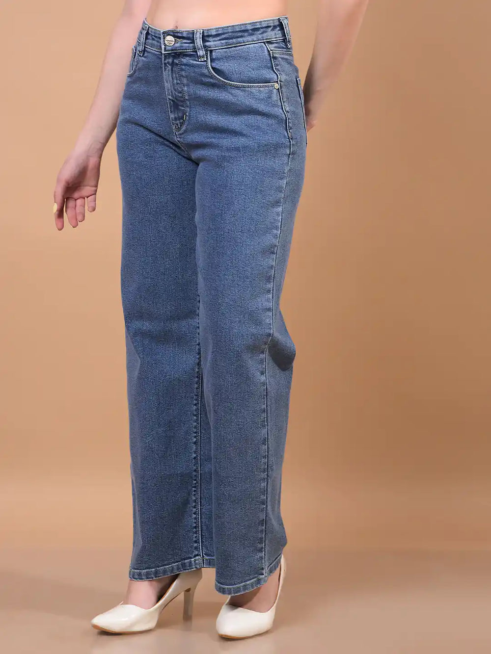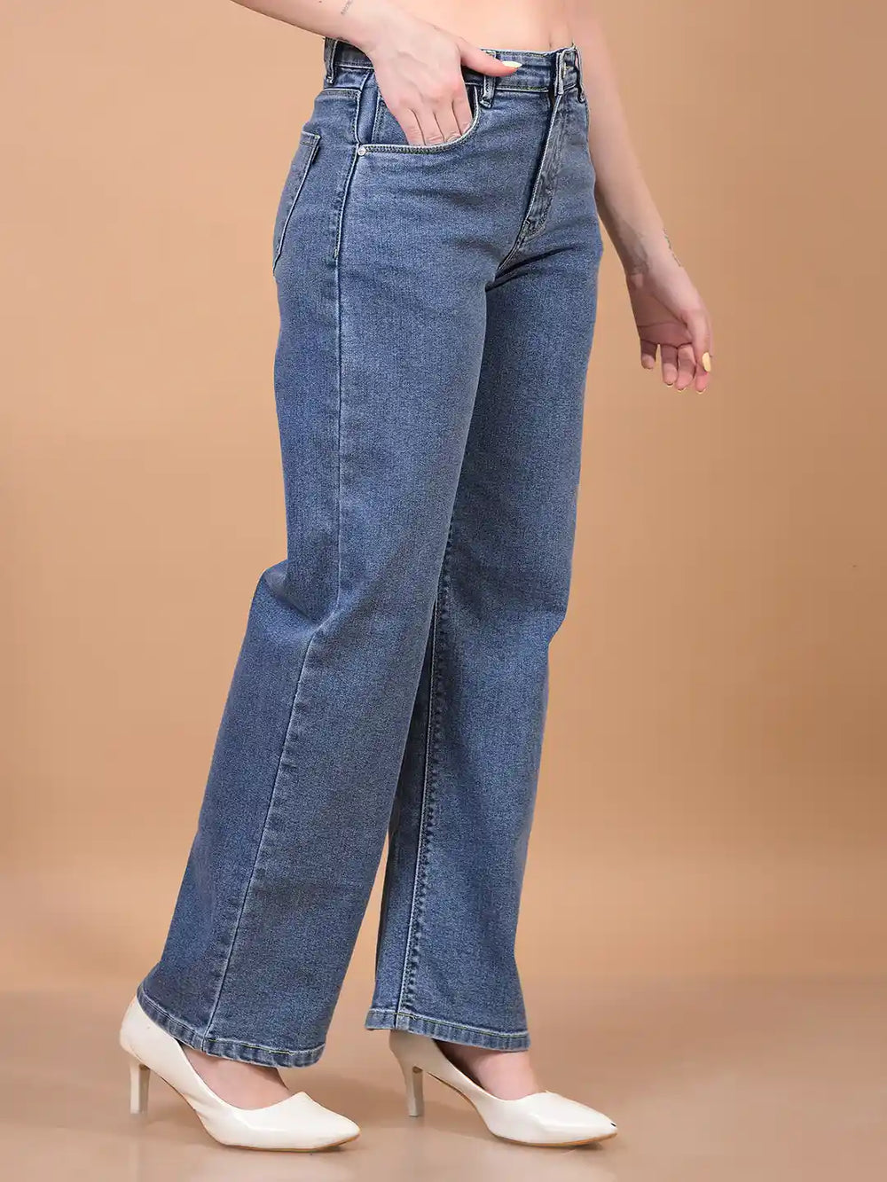 Crimsoune Club Women's Blue Wide-Leg Jeans perfectly suited for all-day wear, this design combines a soft feel with tailored charm—ideal for coffee dates, casual Fridays, or spontaneous road trips with friends.