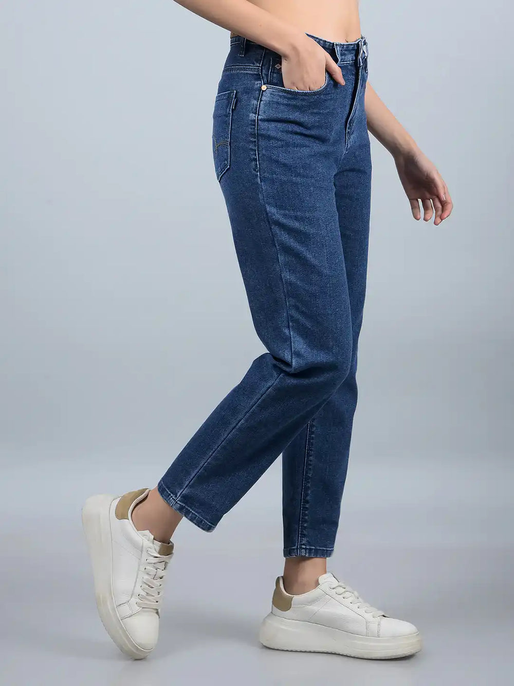 Discover The Elegance Of Crimsoune Club Women's Blue Straight Jeans, Crafted For Those Who Appreciate Style And Comfort.