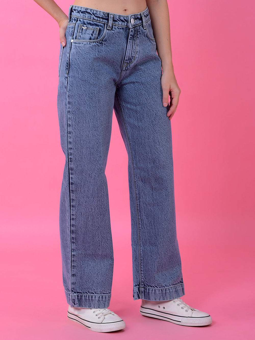 Channel A Laid-Back Yet Stylish Vibe With The Crimsoune Club Women's Blue Wide-Leg 100% Cotton Jeans. Crafted From Soft, Pure Cotton, These Comfortable Wide-Leg Jeans In A Classic Blue Wash Offer A Relaxed Silhouette And A Touch Of Effortless Cool. Perfect For Everyday Wear, They Bring A Fashionable Update To Your Casual Collection.
