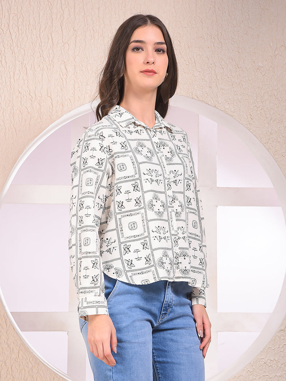 Women's Black Printed Shirt By Crimsoune Club, Crafted From Breathable 100% Cotton. Stylish Print With A Relaxed Fit For All-Day Comfort.