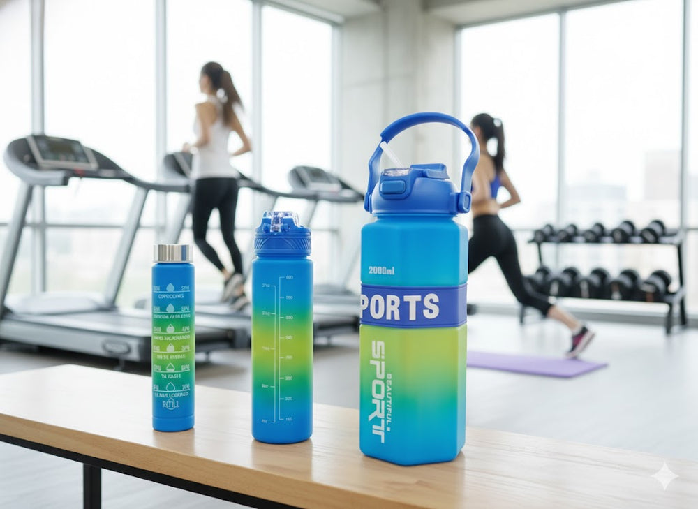 Stay hydrated and motivated throughout the day with this Gradient Sports Water Bottle Set, featuring three vibrant bottles in gradient blue-green shades. Designed for fitness enthusiasts, travelers, and daily users, this set combines functionality with modern style — perfect for workouts, office, and outdoor activities.