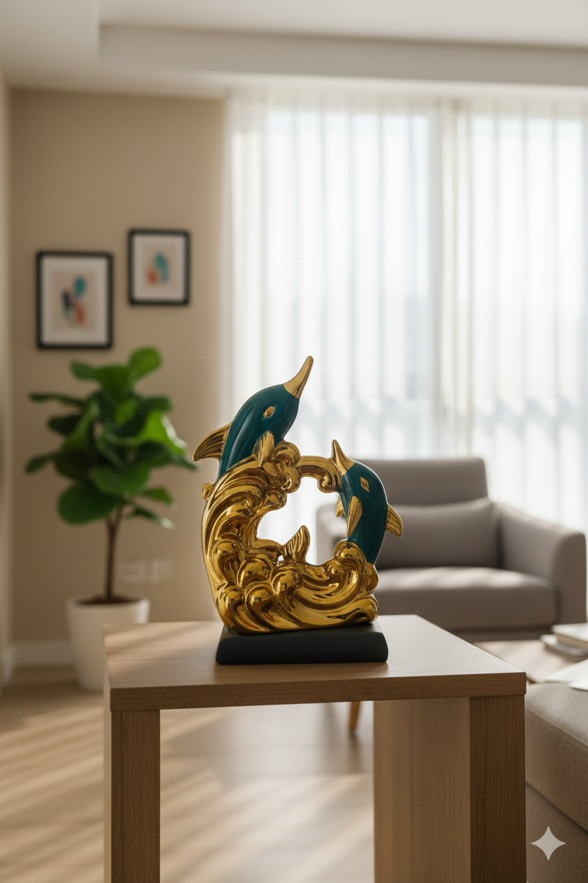 HIGH-QUALITY CRAFTSMANSHIP: Made from durable Ceramic or High-Grade Resin with a smooth, glossy glaze on the dolphins and a highly reflective electroplated finish on the waves.