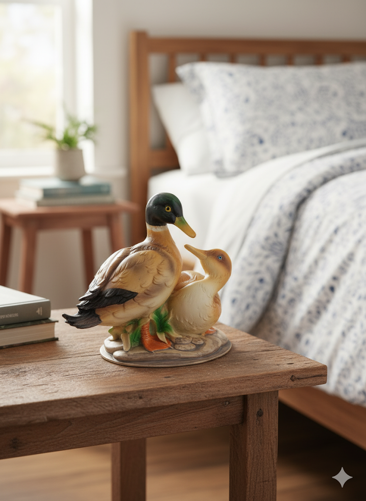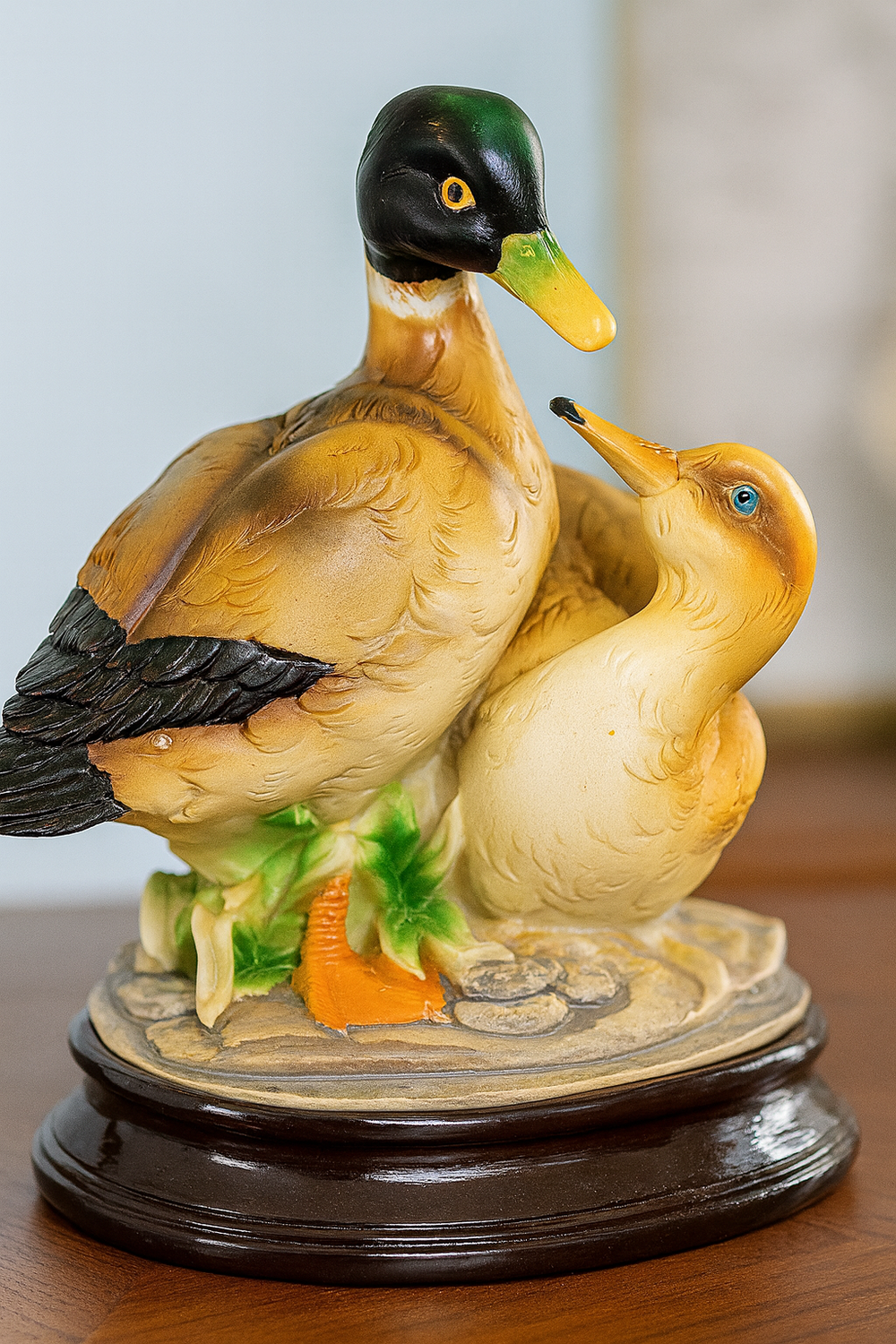 A Tender Touch of Nature: Bring the gentle beauty of nature indoors with this charming Duck and Duckling figurine. Featuring a male mallard alongside its young, this sculpture captures a heartwarming moment perfect for any room.