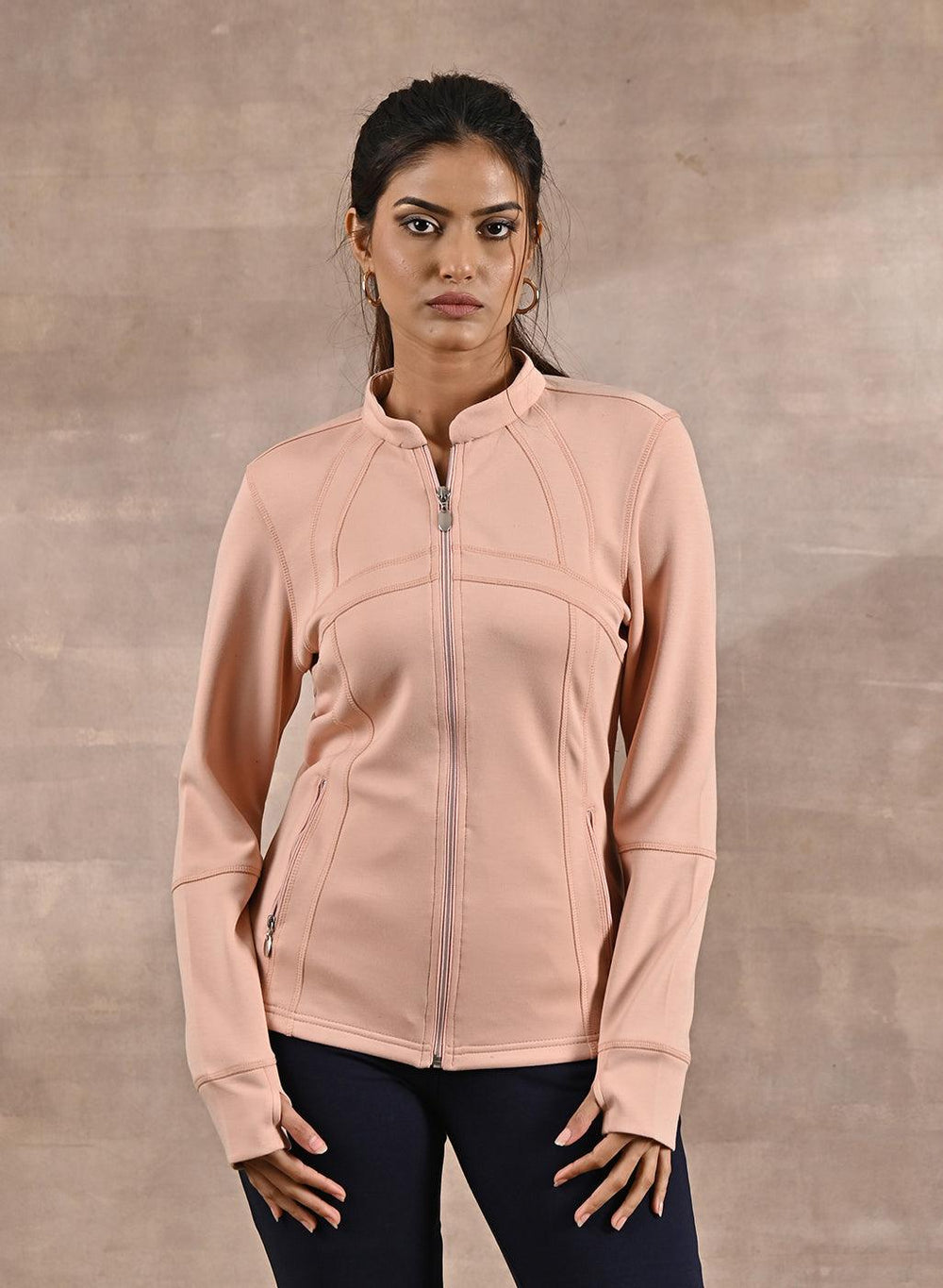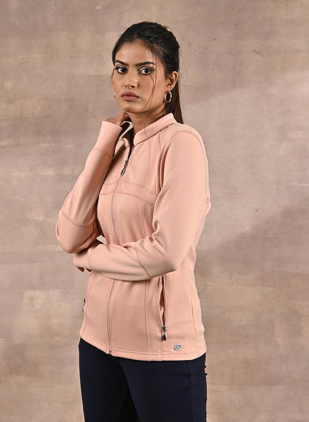 This peach-coloured regular-fit jacket with extra long sleeves is a fine example of stylish winter wear. It showcases a mandarin collar along with zip closure at the front and the pockets. Team up with boots and slim-fit pants to achieve that charming and sophisticated look.