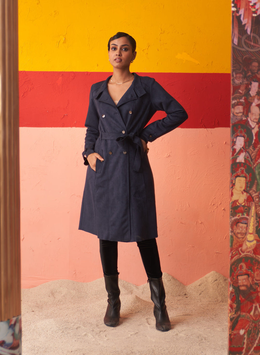 Fabric detailing- Suede epitomizes quality through its velvety texture and supple feel, offering a luxurious touch to fashion and accessories. Known for its durability, suede provides a sophisticated appearance. With its timeless elegance, suede fabric stands as a premium choice when it comes to coats and jackets.