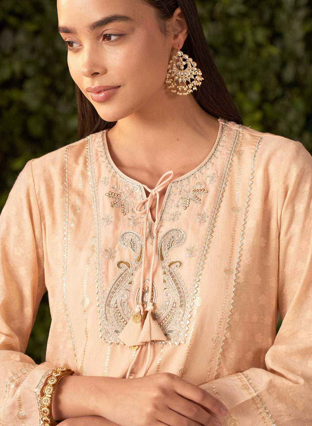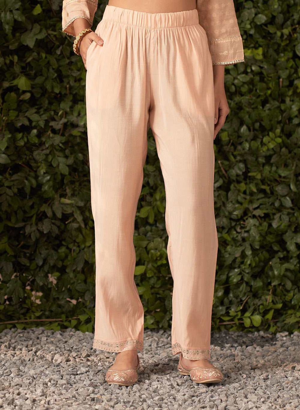 This Blossom Salwar Kurta set is a vision of festivity, crafted from lustrous Chanderi Jacquard that shimmers under the light. The kurta is designed for classic comfort with a straight silhouette that gracefully skims the body. The lightweight, breathable fabric keeps it airy and effortless, perfect for long festive days.