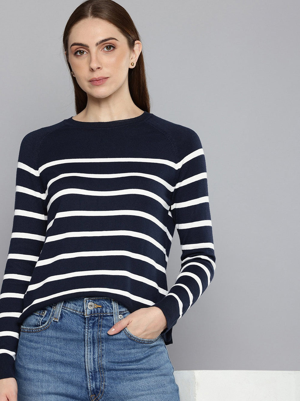 This navy sweater by Levi's, designed for a cosy regular fit is a seasonal essential you can reach for year after year. Featuring a classic crew neck and full sleeves, this striped sweater is versatile and can easily be dressed up or down depending on the occasion.