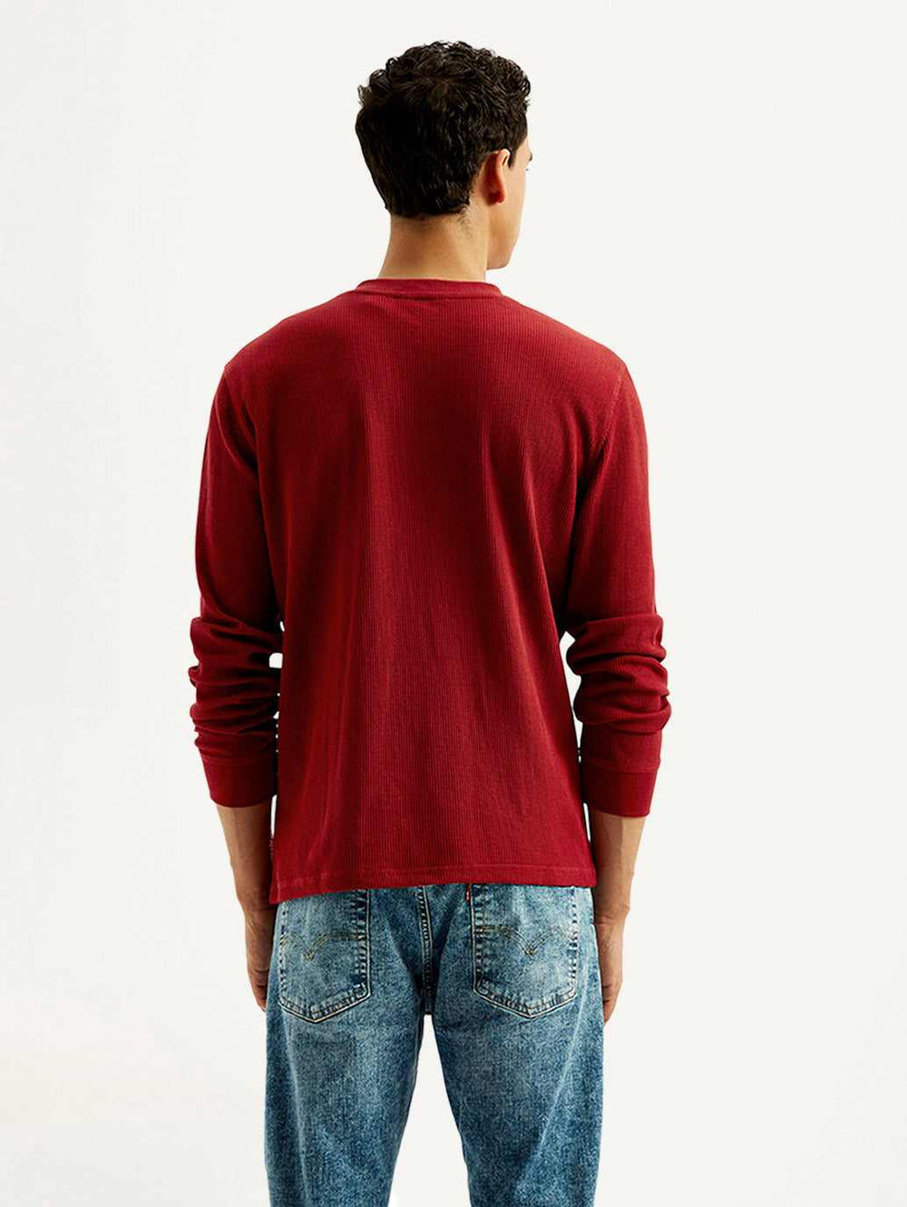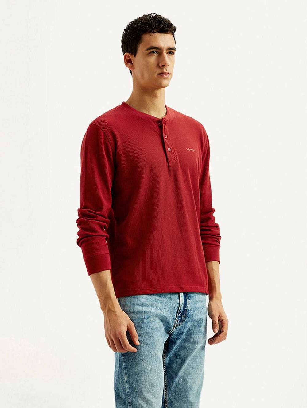 Step up your game and grab this latest t-shirt by Levi's for your wardrobe rotation. Ideal to wear with your jeans, shorts, or even your chinos, this red cotton blend t-shirt is designed to be versatile. Standard henley neck and full sleeves in regular fit.