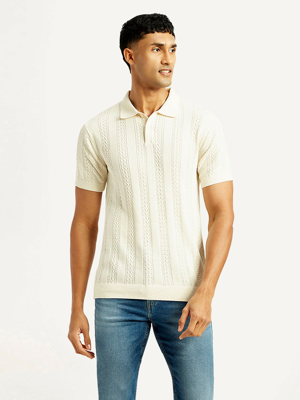 Made from good quality cotton, this easygoing Levis white t-shirt is perfect to add to your casual collection. Features a polo collar and a self pattern.