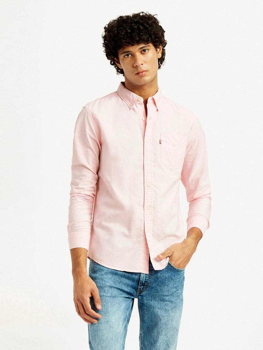 Levi's pink button-down shirt in a solid print is a must-have item for the modern man's closet. Tailored in premium cotton this classic collar neck and full sleeves make it perfect for an uber casual look.
