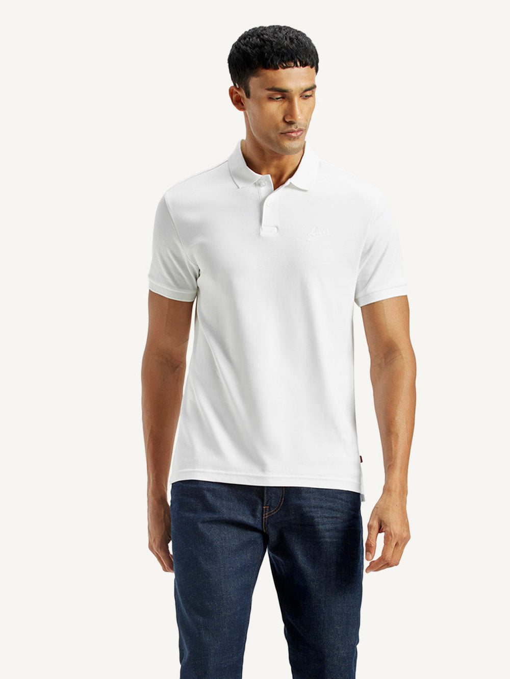 A clean-cut essential, this solid white polo T-shirt from Levi’s adds instant polish to your off-duty wardrobe. Made in a slim fit with a classic polo collar and short sleeves, this men's cotton T-shirt offers a sharp yet easygoing vibe.
