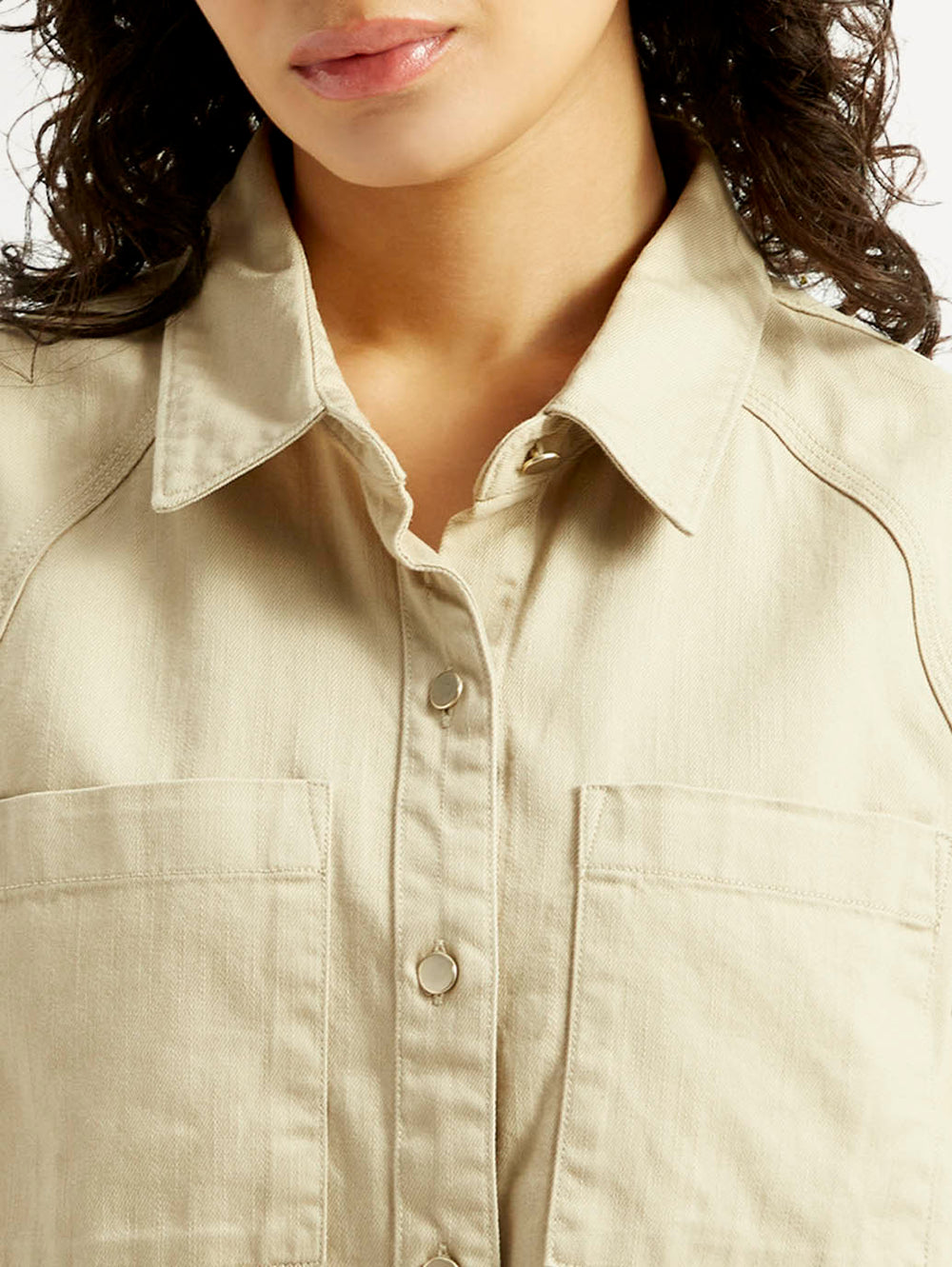 Make your outfit pop with this women's shirt from Levi's. Made from good quality cotton, this shirt features a solid pattern and comes in the color beige. It's shirt collar and full sleeves give a classic look.