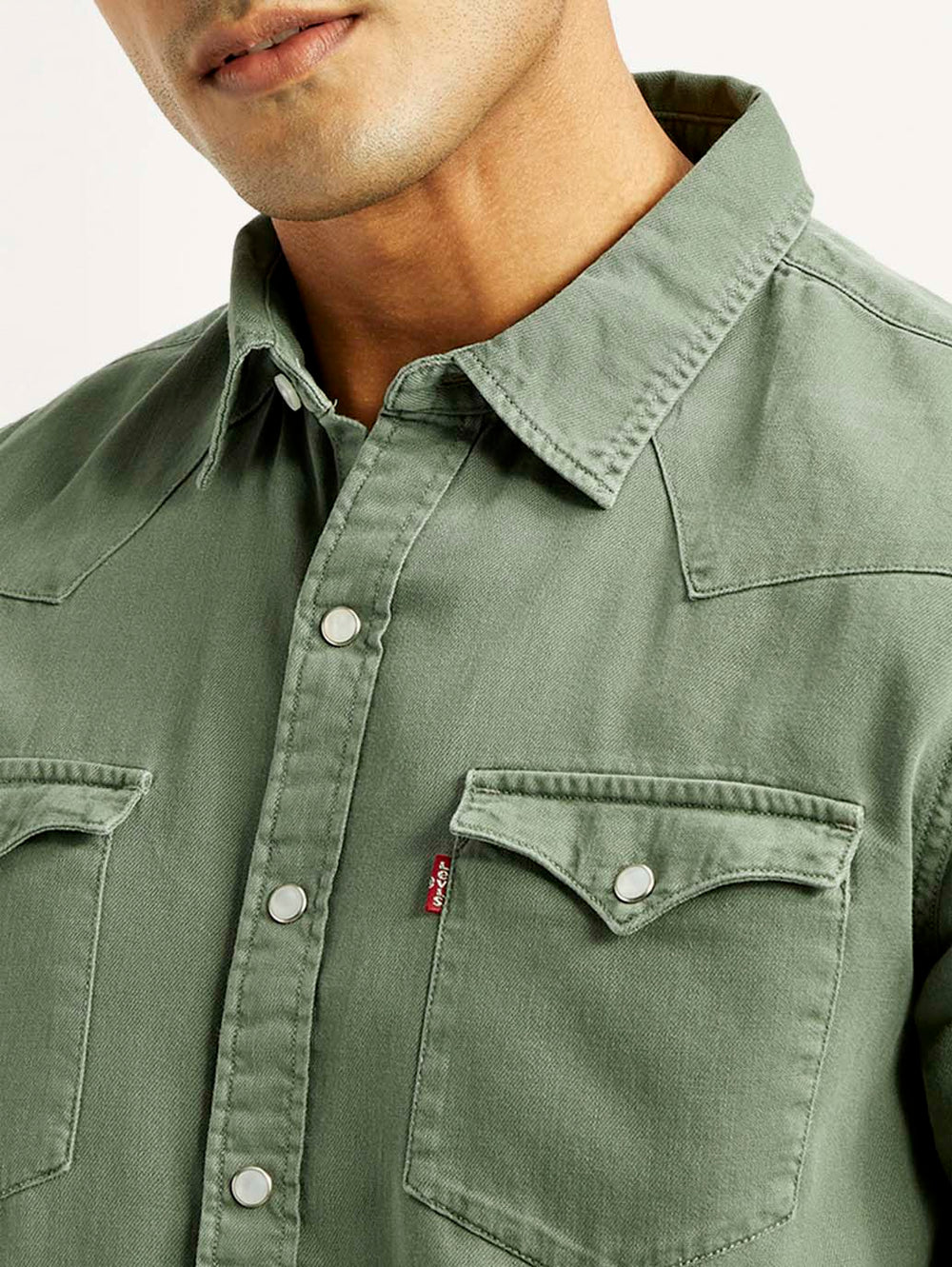 Class up your essentials with this Levi's shirt. The classic shirt collar and solid pattern lend an elegant touch, while its cotton fabric will keep you comfortable all day long. It is perfect for wearing under a jacket with jeans.