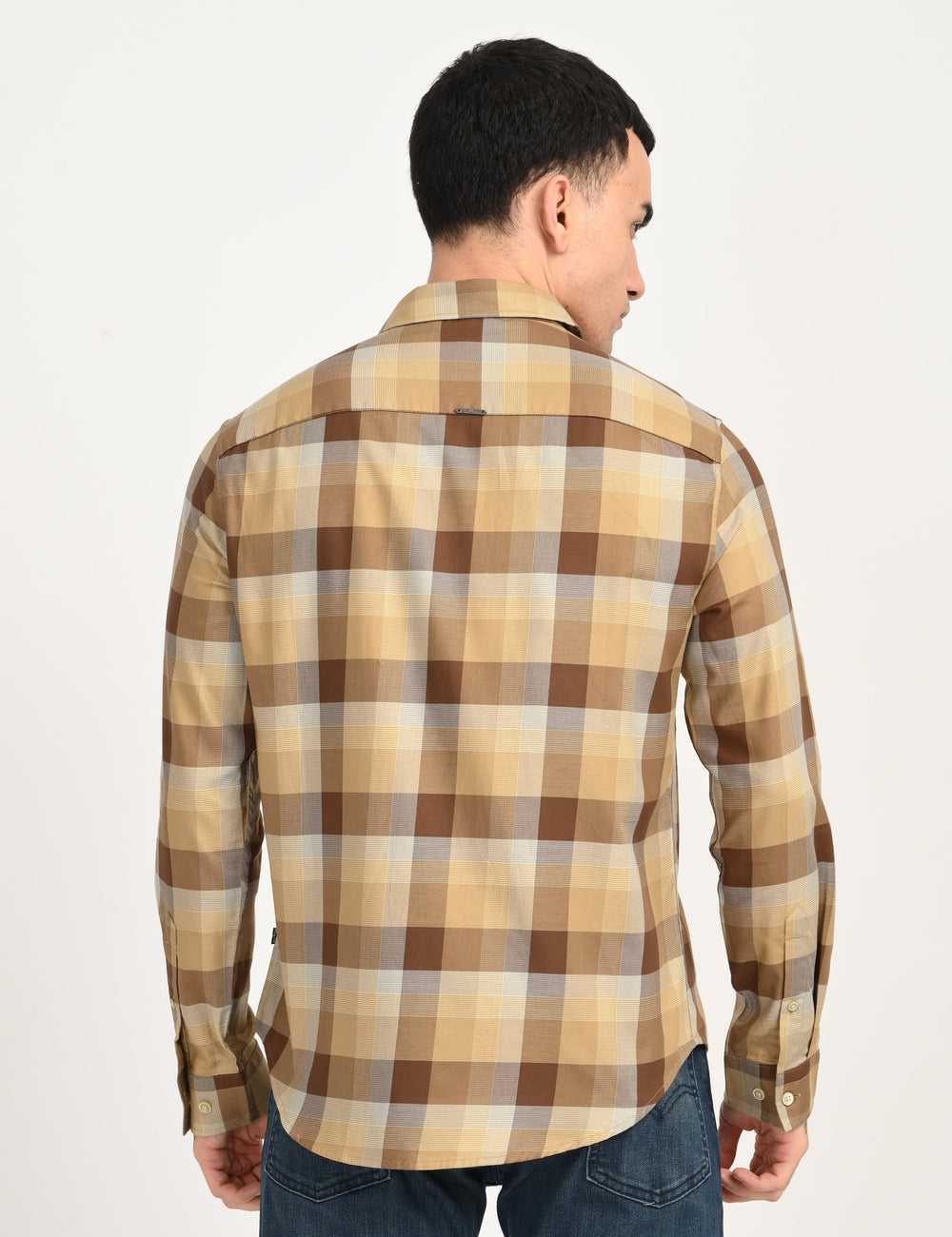Sometimes, only a classic will do. This brown checked pattern and the comfortable slim fit add an edge to your casual wardrobe. The full sleeves and spread collar can always be counted on to add a touch of casual class. A stylish choice for everyday wear.