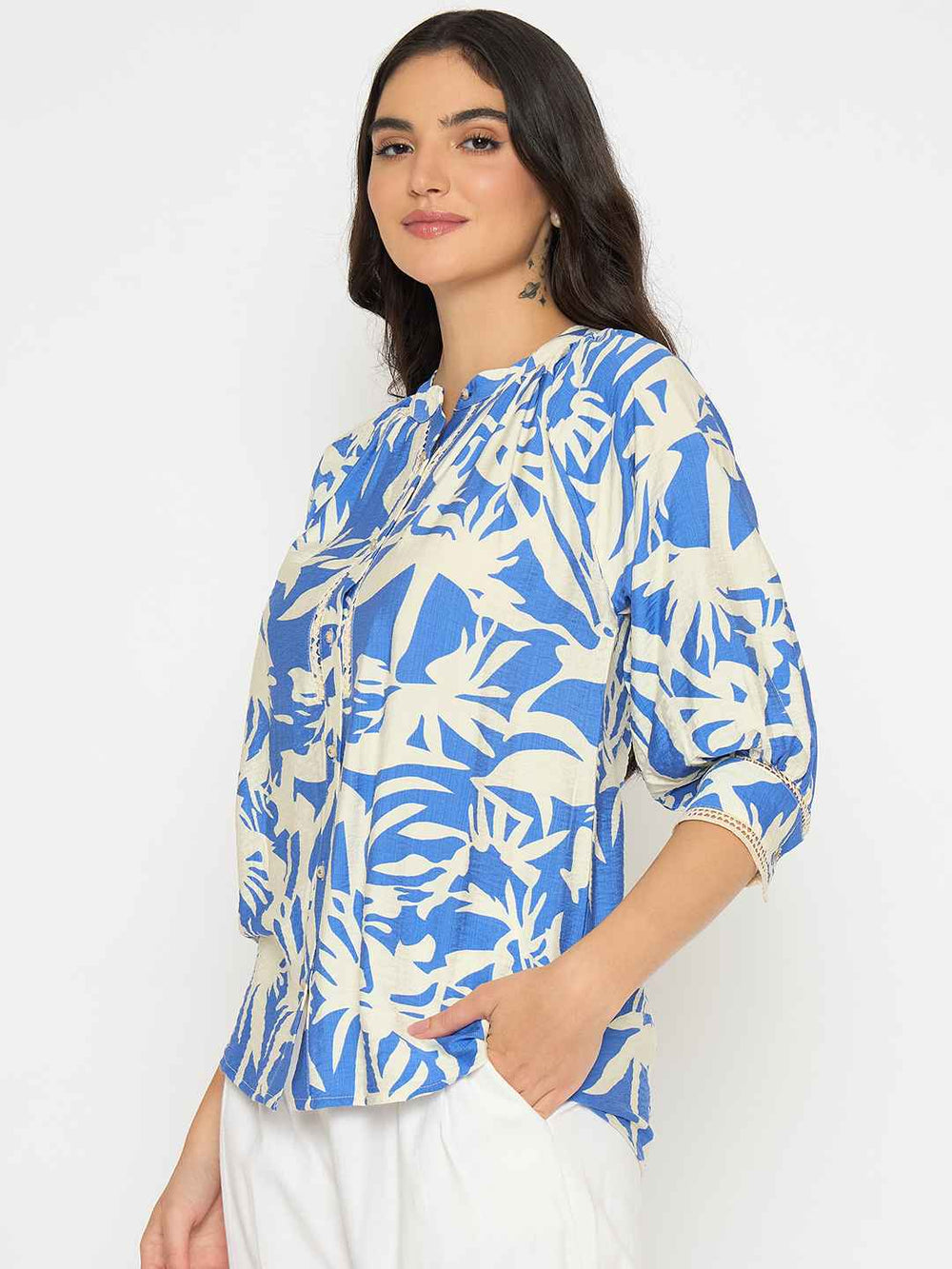 This beautiful royal blue top blooms with nature's imprints as botanical prints. Crafted in a breathable rayon blend, this top is both equal parts flowy and flattering.