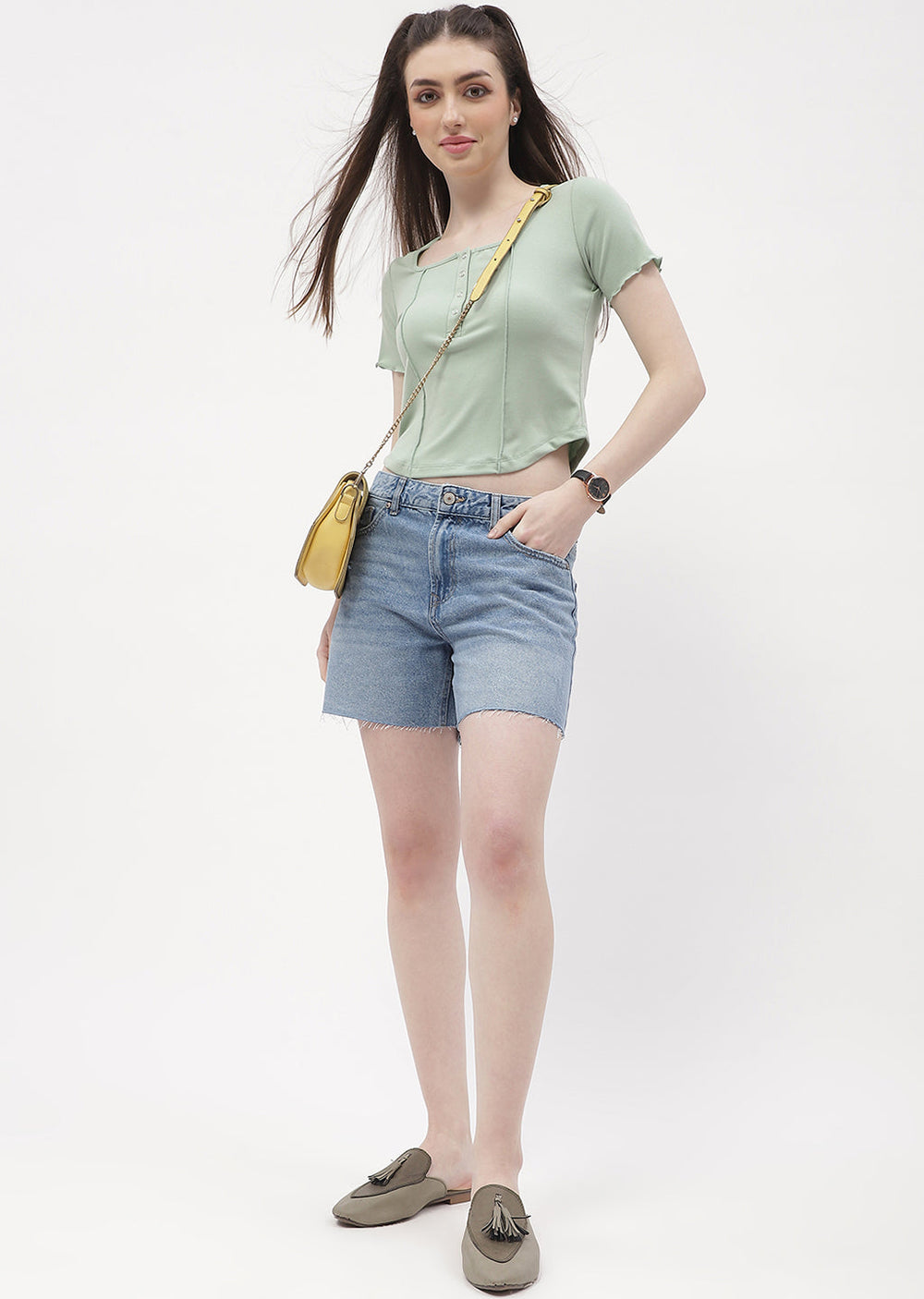 Step into the standard mint green corset style of our top, where daring meets style. Beautifully emphasizing your curves, this shirt is crafted in classic mint green and offers a flattering corset-inspired style. Sweetheart neckline exudes a subtle charm, while structured bodice and lace-up embellishments provide an air of refined drama. This top will turn heads no matter how you wear itâdressed up for a night on the town or casual with jeans.