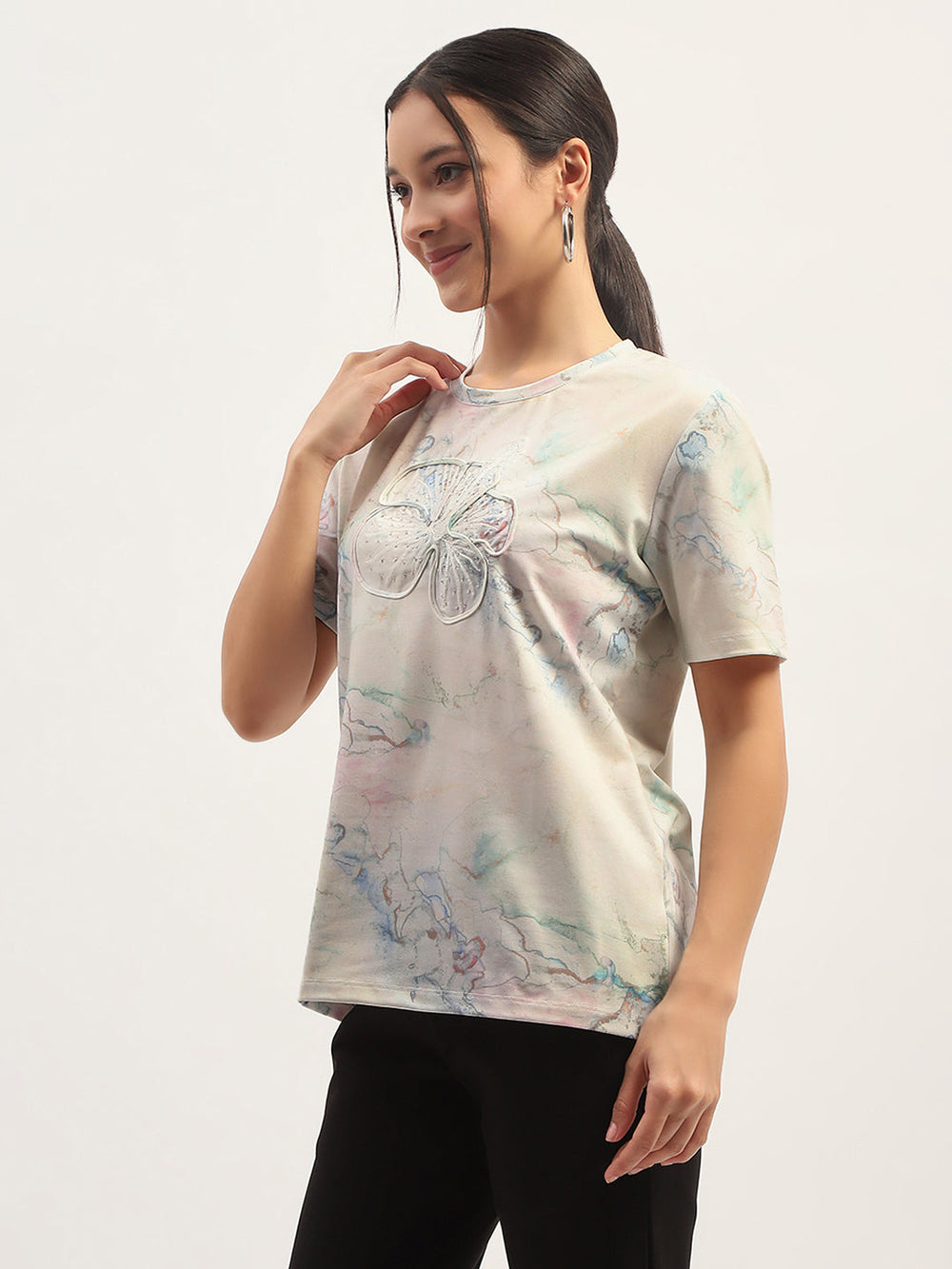The t-shirt is a casual yet fashionable choice, perfect for office wear. The printed pattern on the dress adds a touch of personality and flair to the outfit, making it a trendy and eye-catching piece. With its comfortable fit and trendy style, this dress is a versatile addition to any wardrobe. Perfect for a day out or a casual gathering or in the office, this dress combines fashion and comfort effortlessly.