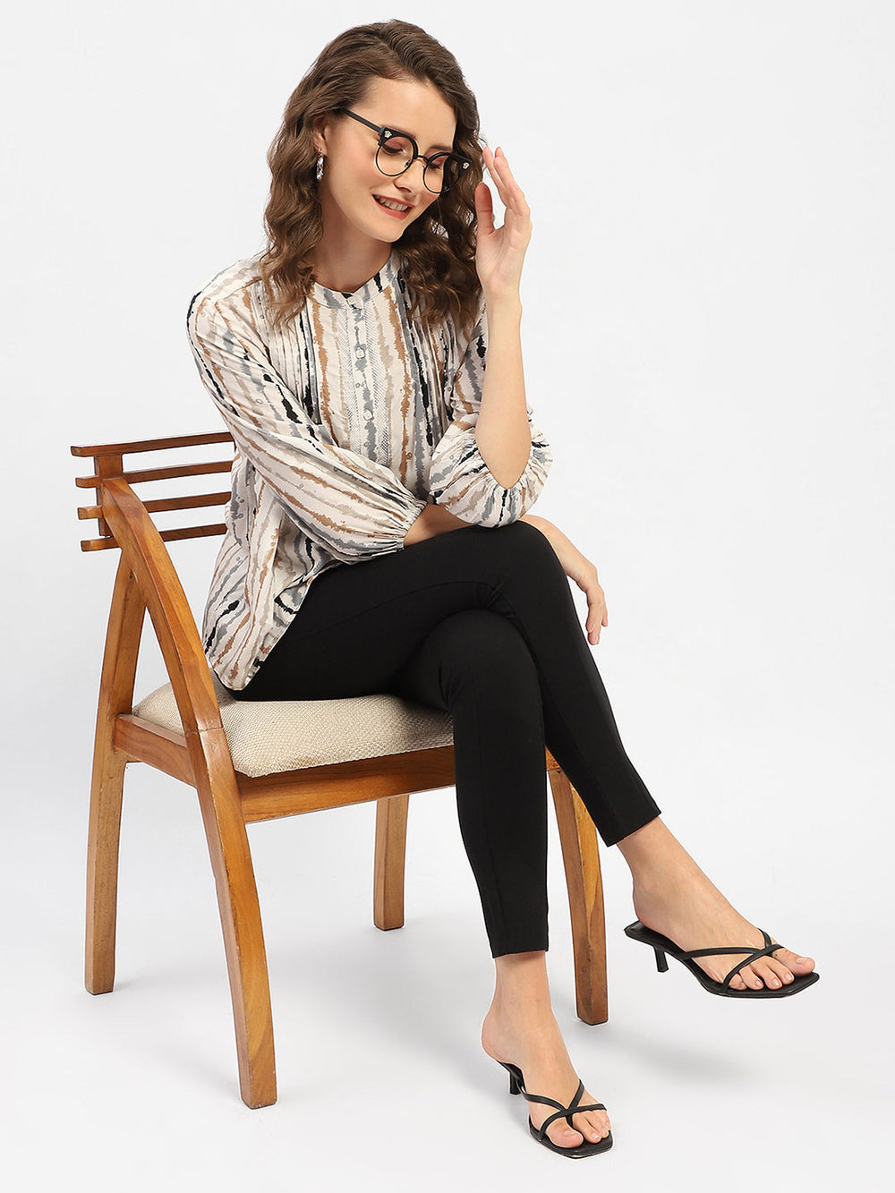 Our Abstract Print Off-White Regular Top will add a touch of modern style to your closet. Elegant modernism meets timeless classicism in this stylish item. The abstract print gives the off-white canvas an artistic touch, making it stand out. Stylish and functional, this top is great for lounging about the house in all day.