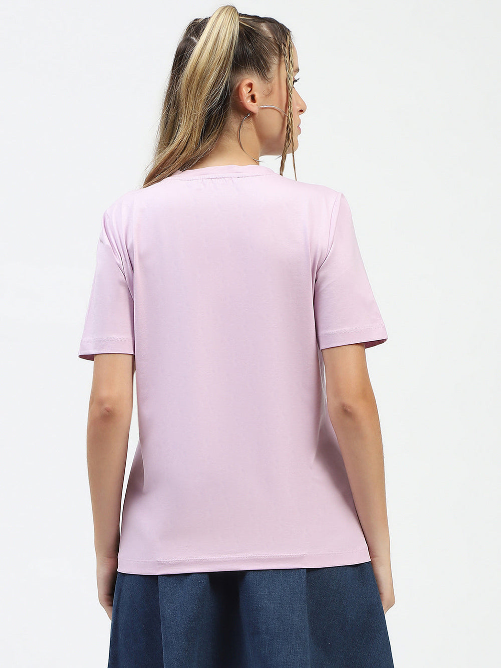 Made from soft, breathable cotton fabric, this T-shirt offers all-day comfort and is perfect for everyday wear. The delicate lavender color adds a feminine and refreshing vibe, making it a versatile piece that pairs well with various bottoms, from jeans to skirts. The T-shirt features a bold, abstract graphic print in the center, combining shades of green, white, and pink for a unique, eye-catching design. The classic crew neckline and short sleeves provide a regular fit, while the straight hem ensures a flattering silhouette. This T-shirt is ideal for those who love to express their style with minimal effort, offering a blend of comfort, style, and individuality.