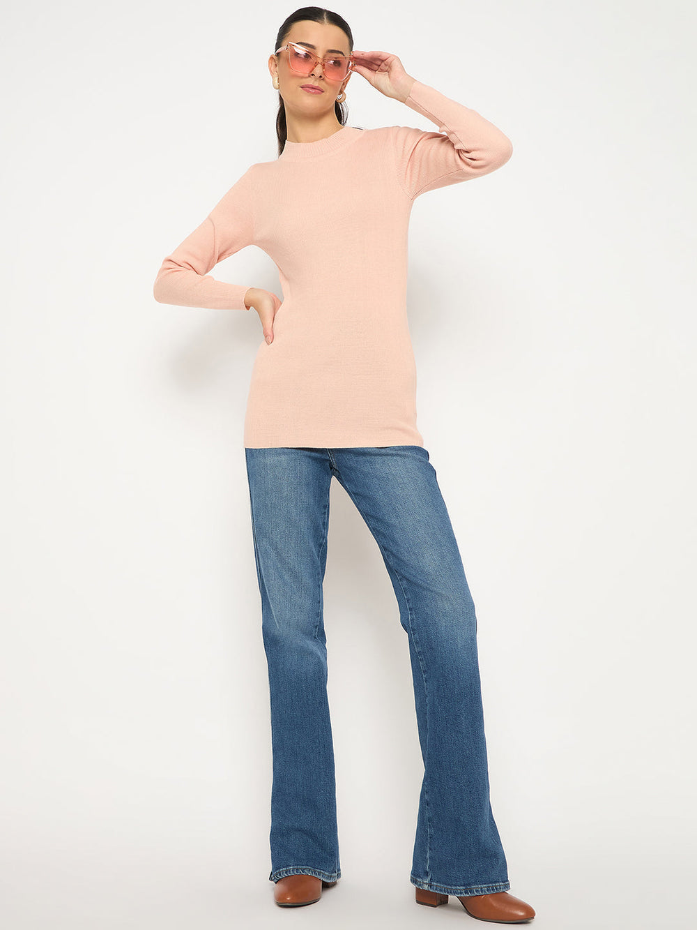 This chic piece is crafted from high-quality acrylic, ensuring a soft and cozy feel against your skin while providing excellent durability. The mock neck design adds a touch of sophistication and the beautiful peach color is not only trendy but also flattering on a variety of skin tones, making it a go-to choice for any occasion. Pair it with your favorite jeans for a laid-back look or tuck it into a high-waisted skirt for a more polished ensemble.