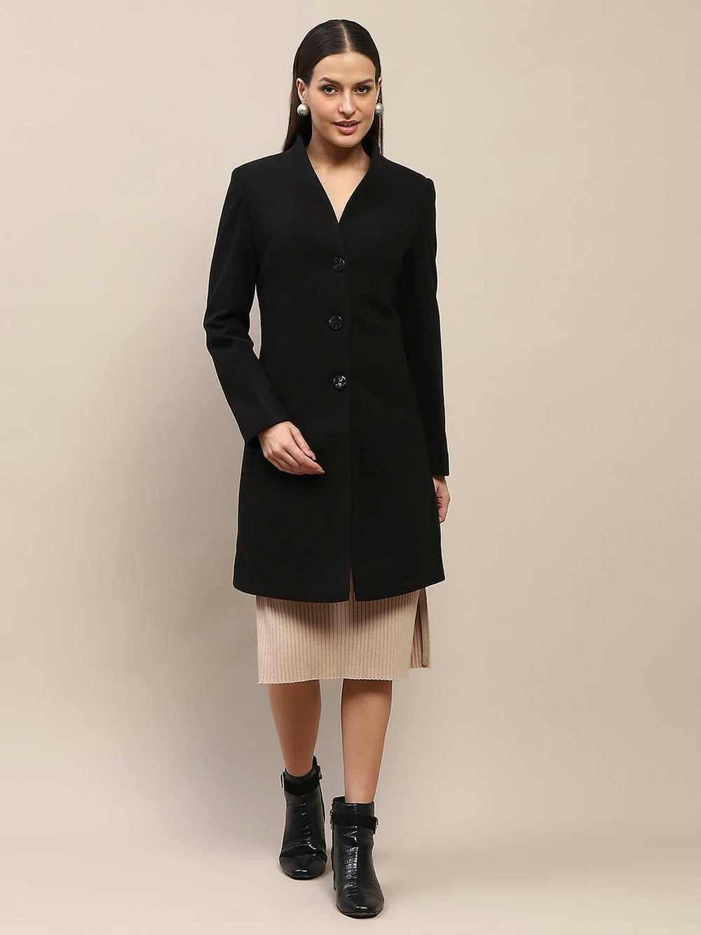 This sleek, versatile black coat is tailored to perfection, featuring a luxurious, long silhouette that enhances any outfit while providing warmth and sophistication. Crafted with precision, it offers deep side inseam pockets for seamless convenience, making it as practical as it is stylish. The classic black hue complements every wardrobe, allowing effortless transitions from day to night or casual to formal.