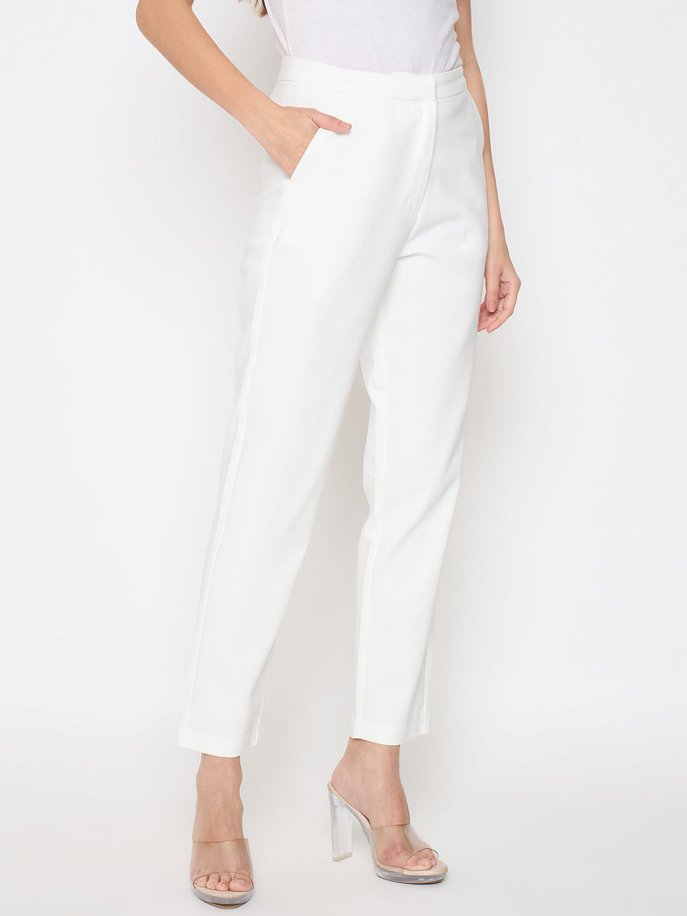 Step into refined elegance with these solid white trousers, designed with an Alex waist belt for a flattering, cinched look. The clean, tailored fit creates a sleek silhouette, while the belt adds a stylish accent to elevate your ensemble. Perfect for both professional and casual settings, these trousers offer versatility with a touch of sophistication. Crafted from high-quality fabric, they provide comfort and durability, making them an essential piece for your wardrobe. Pair with a blouse or a tucked-in tee for an effortlessly chic look.