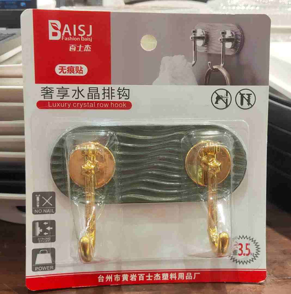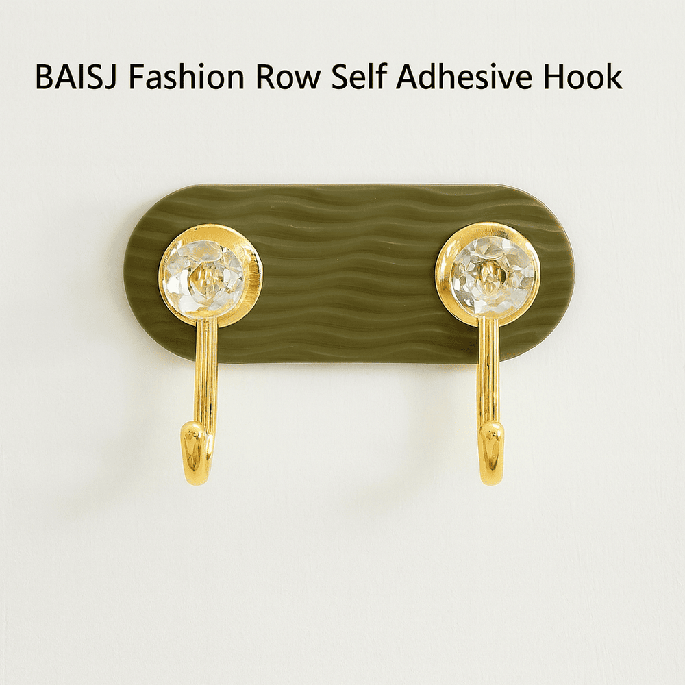 This is a BAISJ Fashion Luxury Crystal Row Hook, a self-adhesive wall hook designed for home organization. It features an elegant olive-green wave-textured base with two golden hooks decorated with crystal-like knobs, giving it a stylish and premium look.