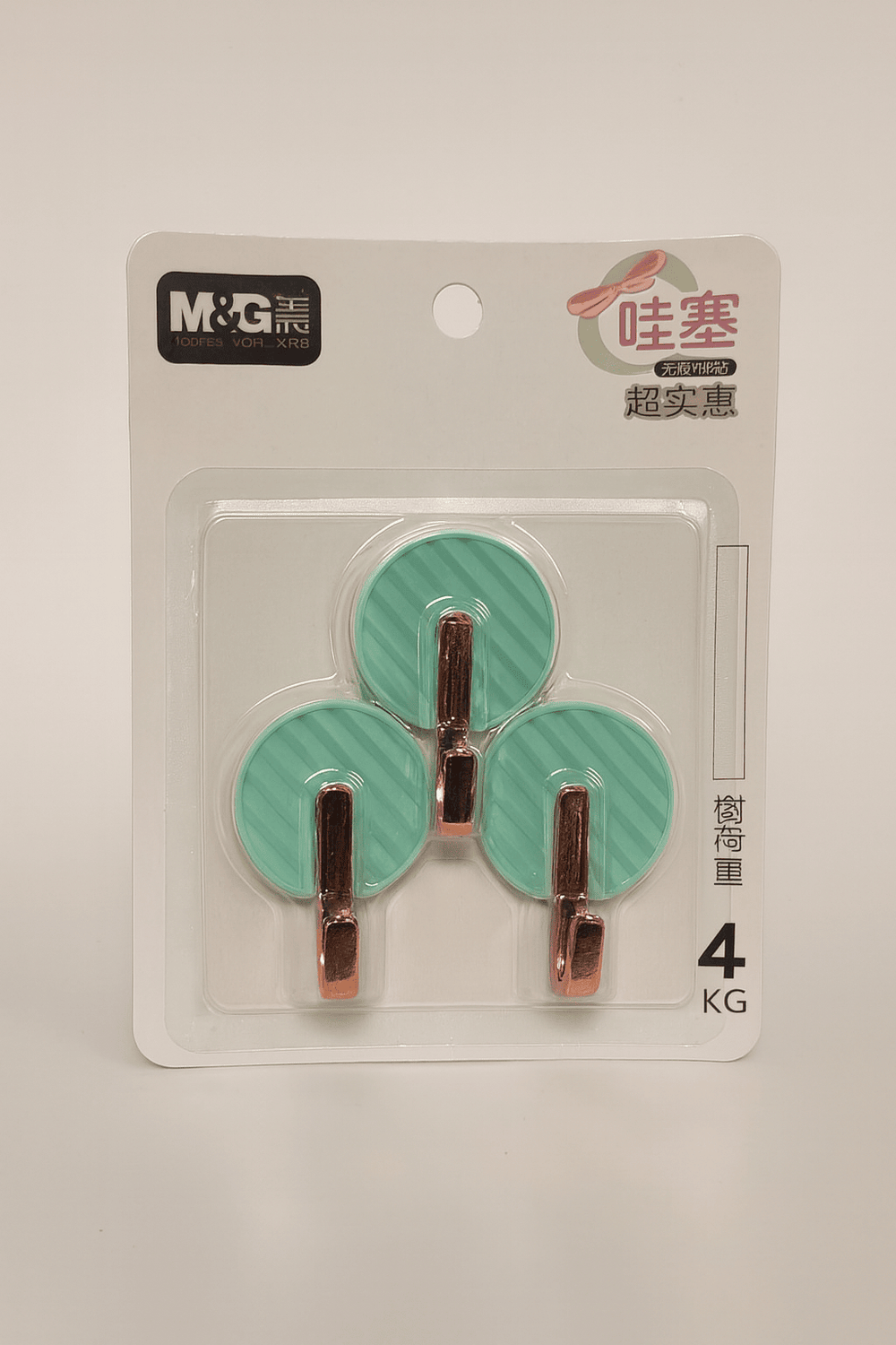 These adhesive wall hooks are designed for convenience, durability, and style. Each hook comes with a mint green circular base featuring a subtle striped texture, paired with a rose-gold metallic hook that adds a touch of elegance.