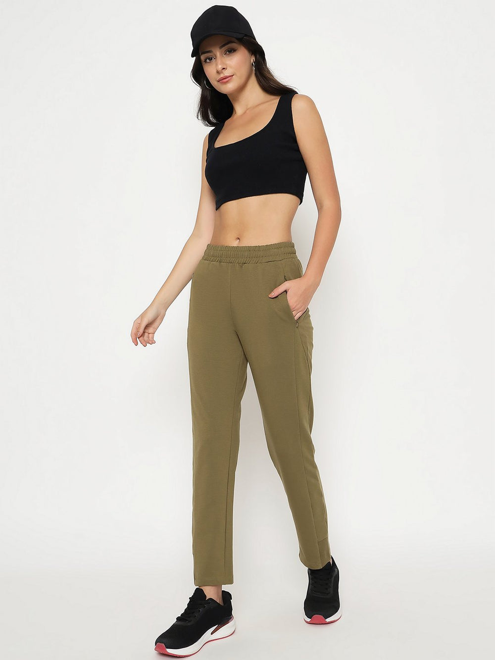 These olive green track bottoms feature subtle pleats for a polished twist on sporty style. Ideal for casual outings or airport looks, pair with a fitted tee.