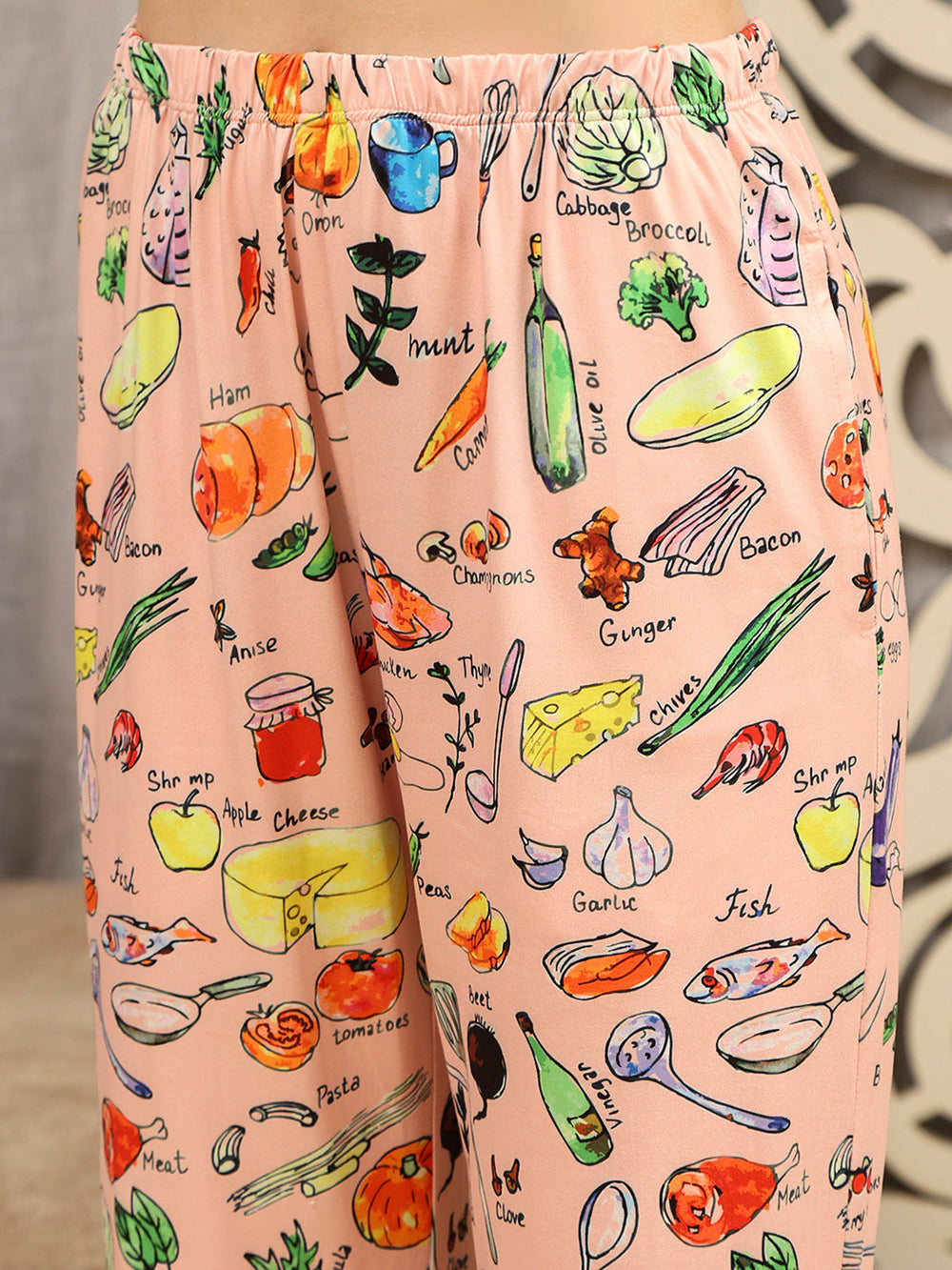Drift into dreamland in this peach nightsuit featuring a playful all-over print and comfy fit. Perfect for lounging or sleep bliss, your go-to for cozy nights.