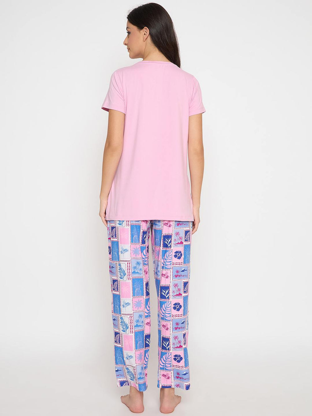 This pink night suit features bold prints on both top and bottoms, blending playful style with soft comfort. Perfect for cozy nights or relaxed weekends at home.