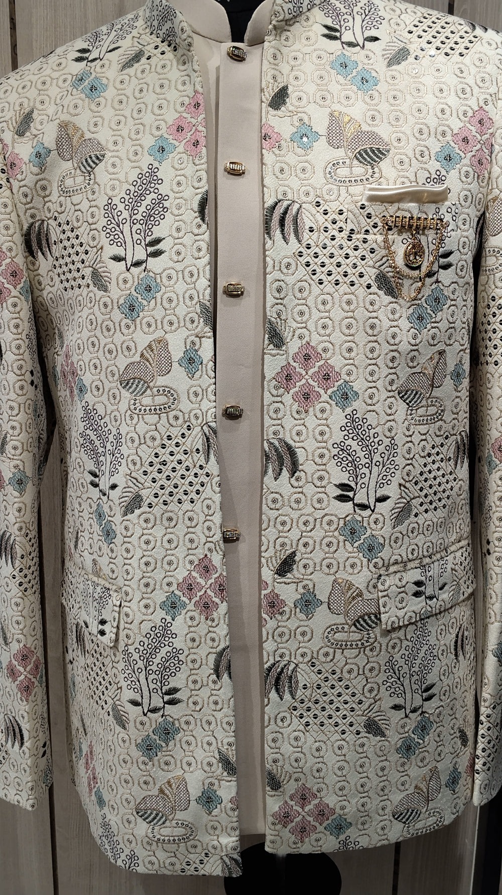 Premium Jodhpuri/Bandhgala Style: Tailored short jacket with a stiff Mandarin collar, offering a clean, modern silhouette.